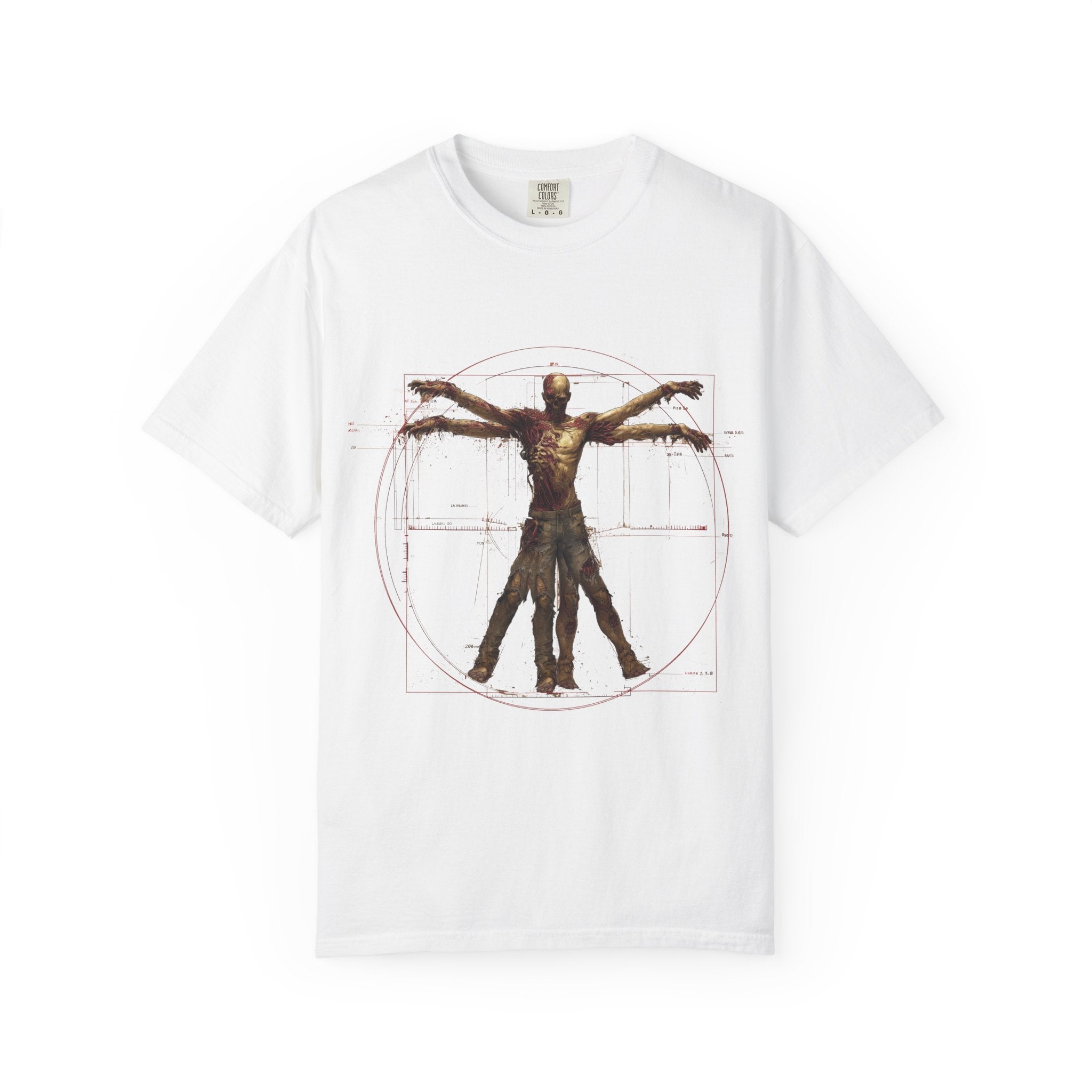 Remember: In a world full of basic t-shirts, be the person wearing a zombie Vitruvian Man. Because even the undead deserve to be geometrically perfect!