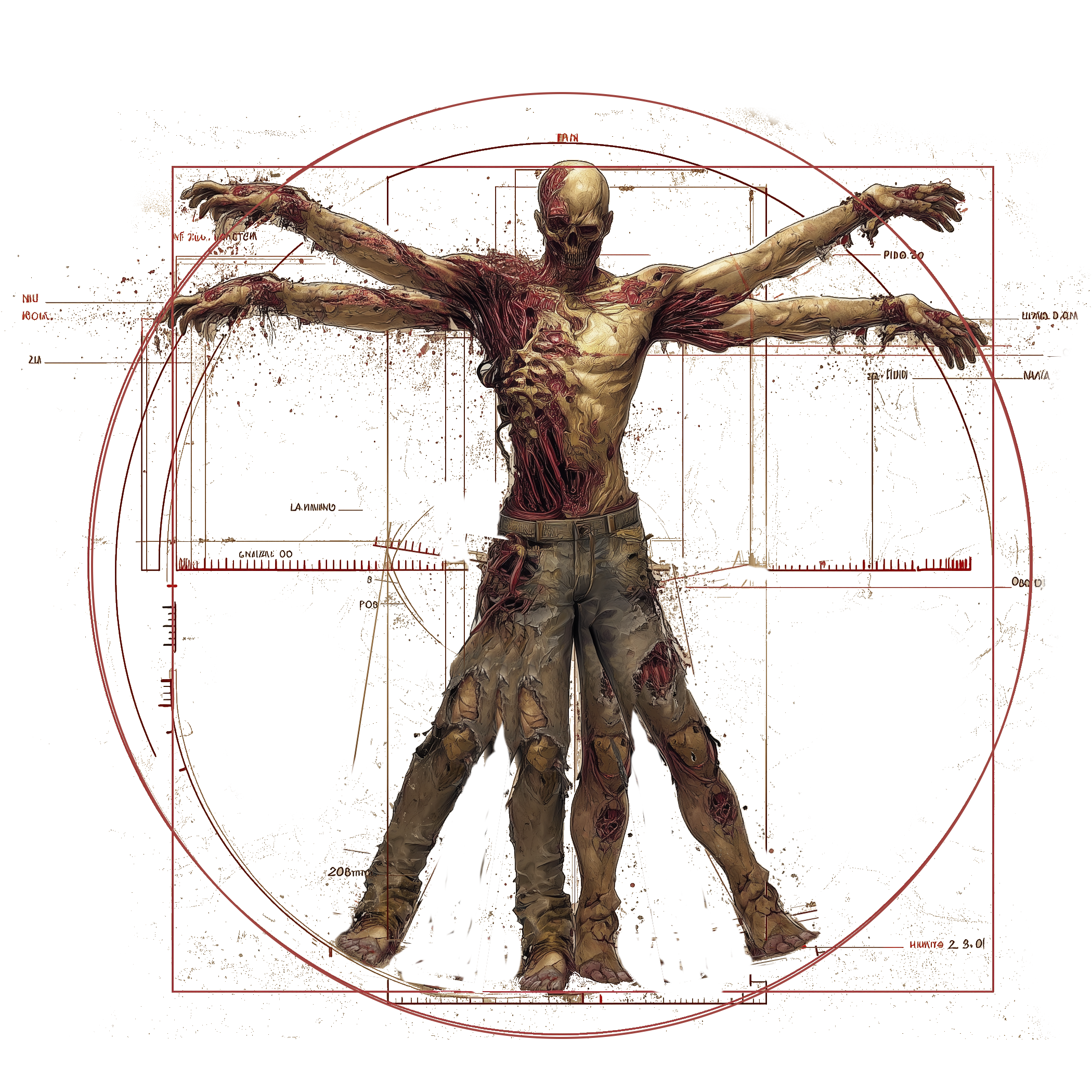 When Leonardo da Vinci designed the perfect human proportions, he clearly didn't account for the zombie apocalypse! This masterpiece of undead anatomy proves that even in decomposition, there's still beauty in the chaos.