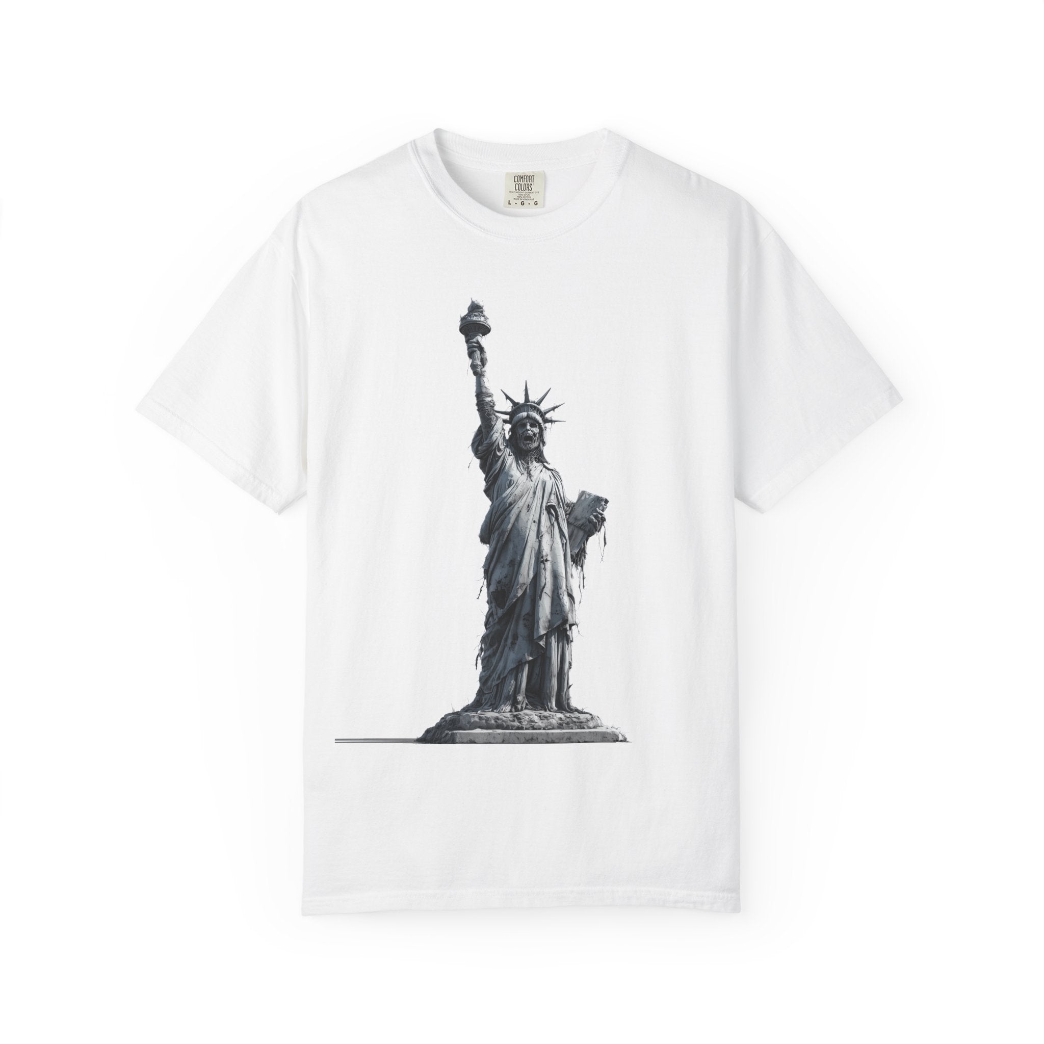 This isn't just any zombie – it's the zombie that represents the American dream! Sure, her skin is falling off and her crown is a bit worse for wear, but she's still holding that torch high, lighting the way for all the other zombies who want to immigrate to the land of the free and the home of the undead.🏛️ ICONIC DECAY