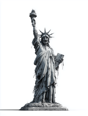 When the apocalypse hit New York, even Lady Liberty couldn't escape the zombie virus! Now she stands tall (well, as tall as a decaying statue can) in her iconic pose, proving that even in death, she's still giving the world the finger... I mean, the torch!